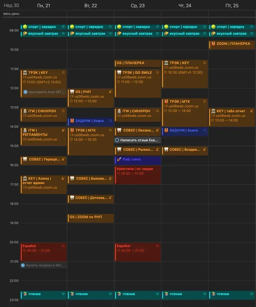 Google или Яндекс Календарь — вместо планировщика. Синхронизируются с сервисом записи Планёрка. Личные дела автоматически блокируют слоты для записи, никто не запишется на время, когда вы у врача или забираете ребёнка. А если у вас будет встреча, она автоматически добавится и в календарь.