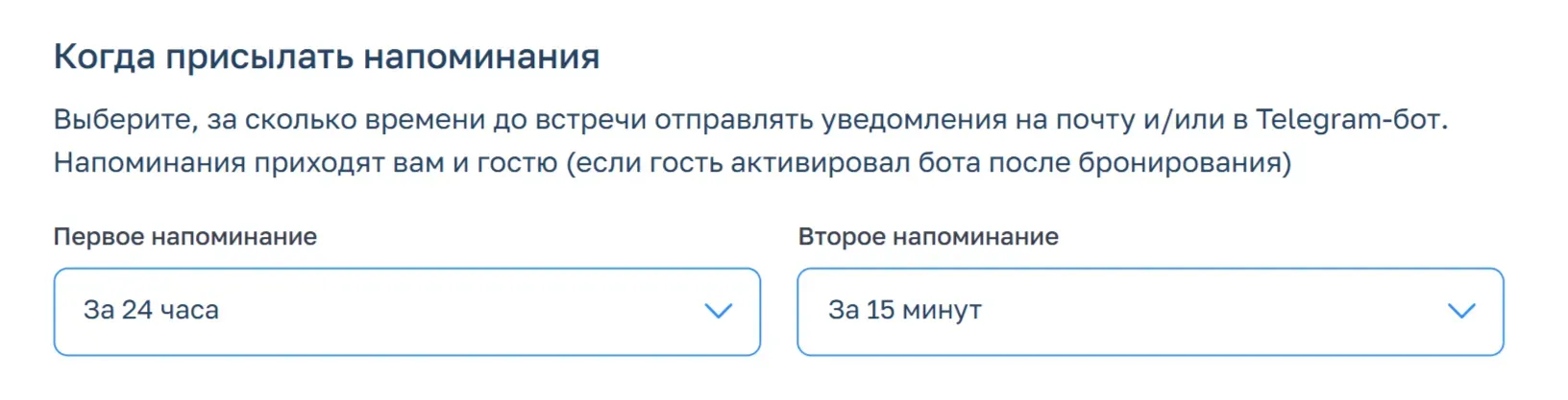 - Время до бронирования встречи: например, сутки, чтобы подготовиться и проверить домашнее задание перед уроком