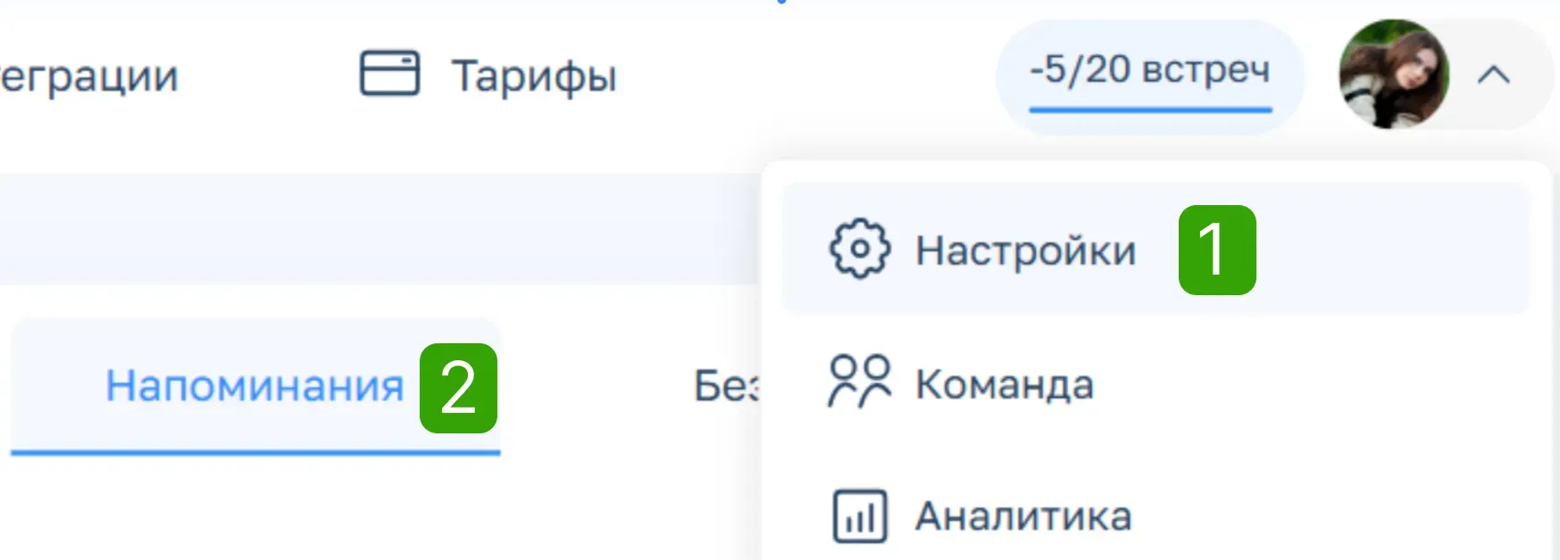 Откройте настройки профиля и перейдите в раздел «Напоминания», выберите в какое время до встречи будут приходить напоминания вам и ученику