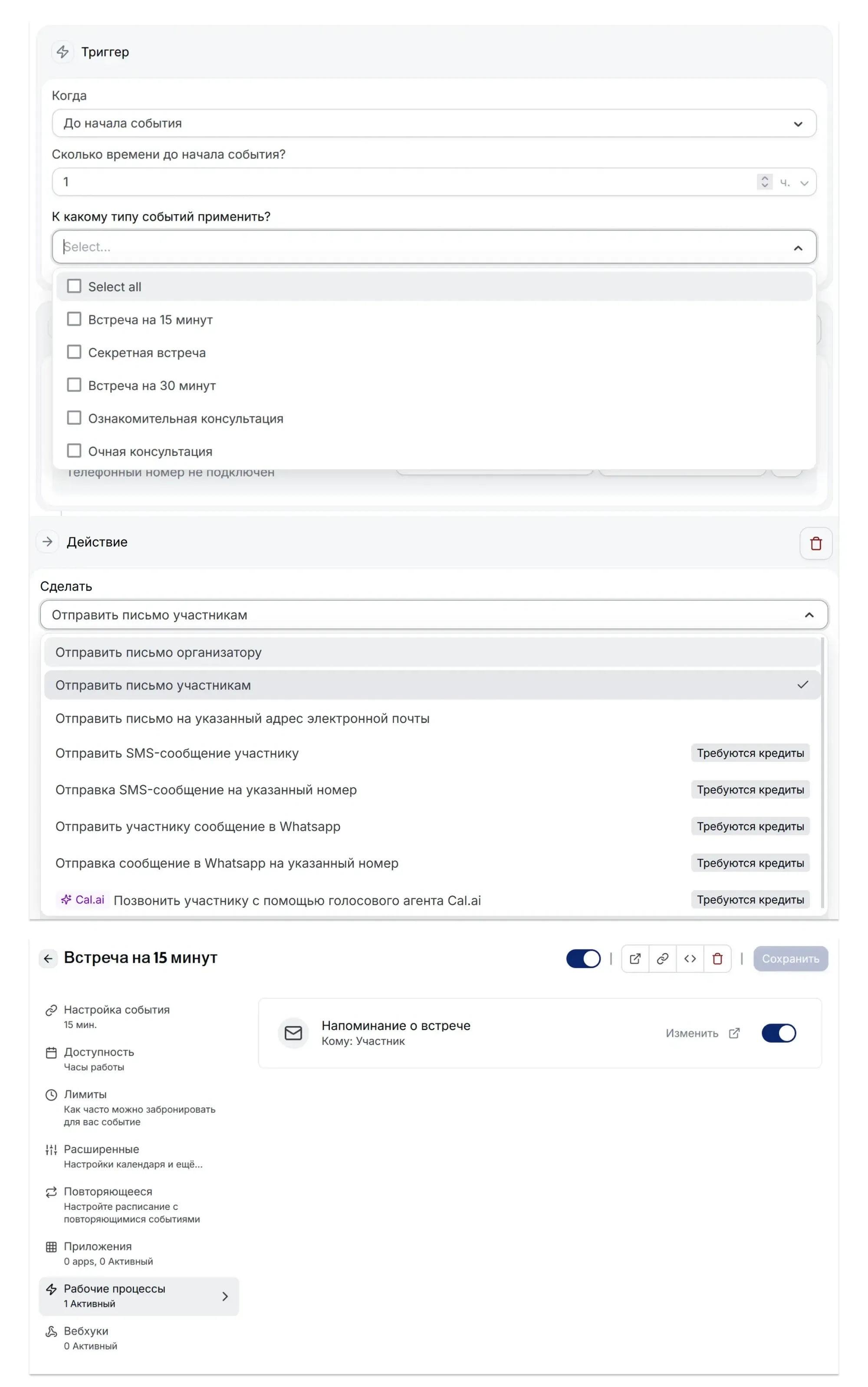 Смотрите, как настраиваются напоминания в Планёрке и в Cal.com ↓