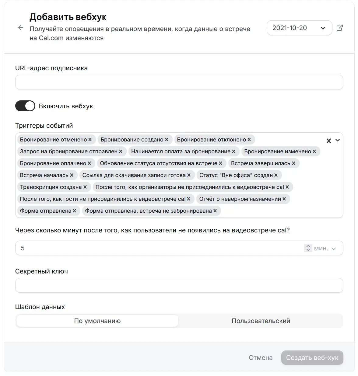 Настройка вебхуков в Планёрке и в Cal.com