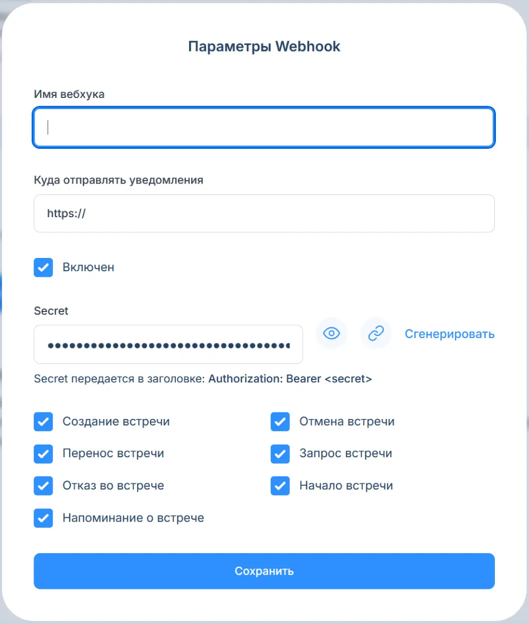 В Планёрке и Cal.com можно настроить вебхуки, чтобы данные автоматически передавались в другие сервисы. Когда клиент бронирует, отменяет или переносит встречу, уведомление приходит в CRM или на платформу для автоматизации рабочих процессов вроде Zapier. Например, маркетолог Иван Субботин настроил вебхуки так, что информация о встречах попадает в Битрикс24.