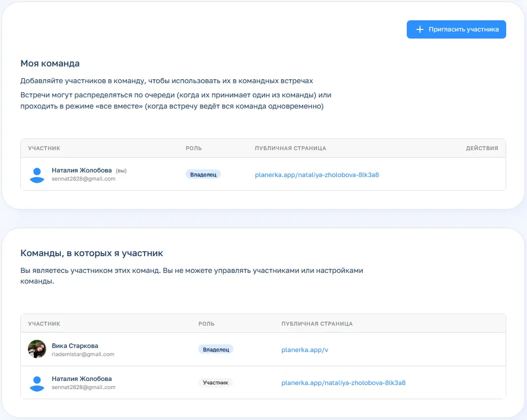 Только на платных тарифах ( от 750 ₽/мес): безлимит на количество встреч в месяц, командная работа, персональная ссылка на публичную страницу, список дел на день из Планёрки и подключенных календарей, работа без брендинга Планёрки.