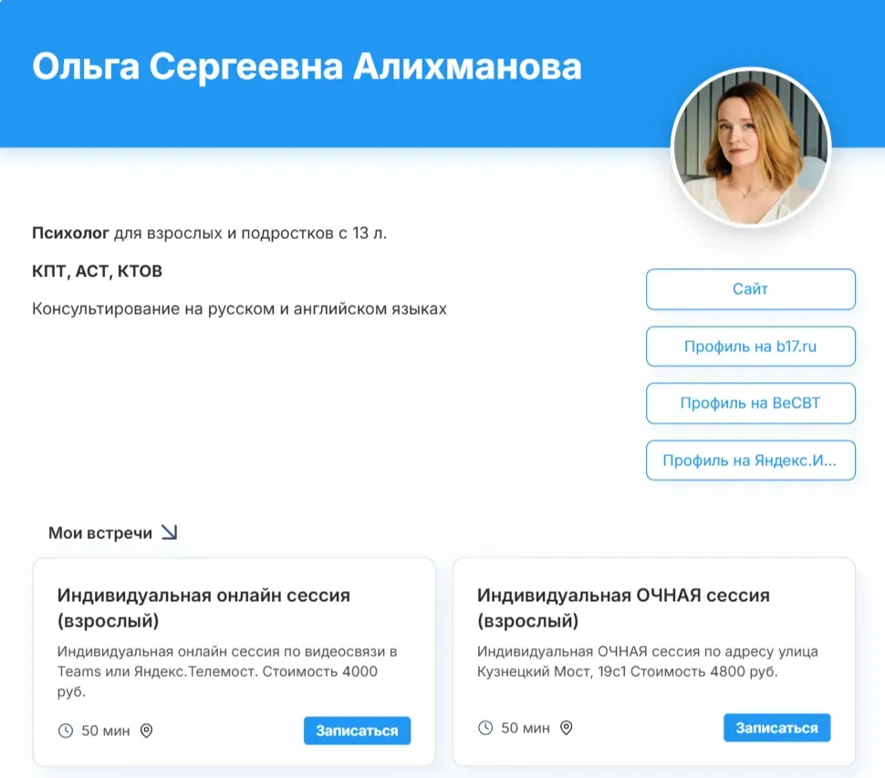 Часть клиентов меня находит на агрегаторах, в основном это Alter и Яндекс Исполнители. Другая часть через «сарафанку» — когда меня рекомендуют коллеги или психиатры, они направляют ко мне своих пациентов в работу.