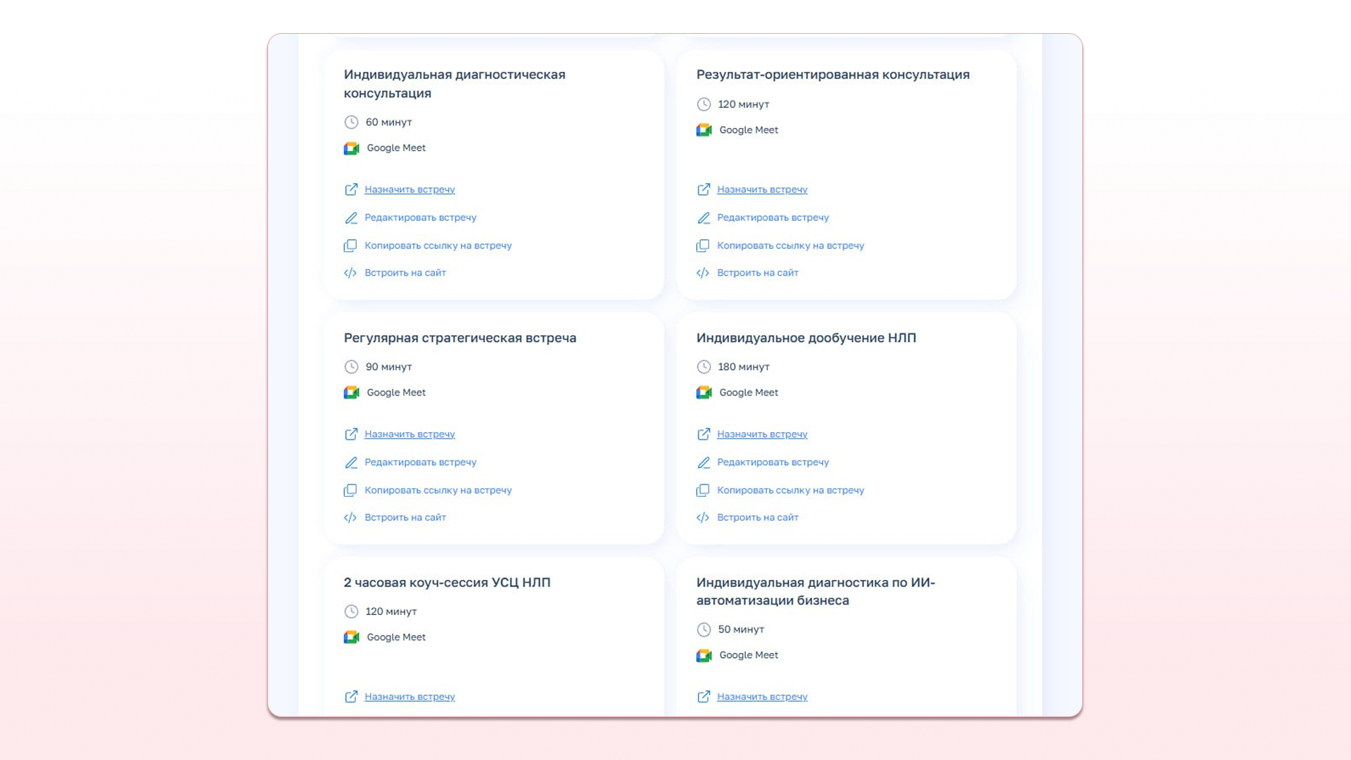 ✅ Клиенты записываются за пару кликов. Я просто присылаю им ссылку. Больше не нужно тратить часы на согласование времени и задавать вопросы вроде: «А во сколько вам удобно?» Это упрощает планирование встреч, даже если я уезжаю в командировку или отпуск. Клиент, перейдя по ссылке на встречу, сразу видит, когда у меня есть доступные слоты для записи.