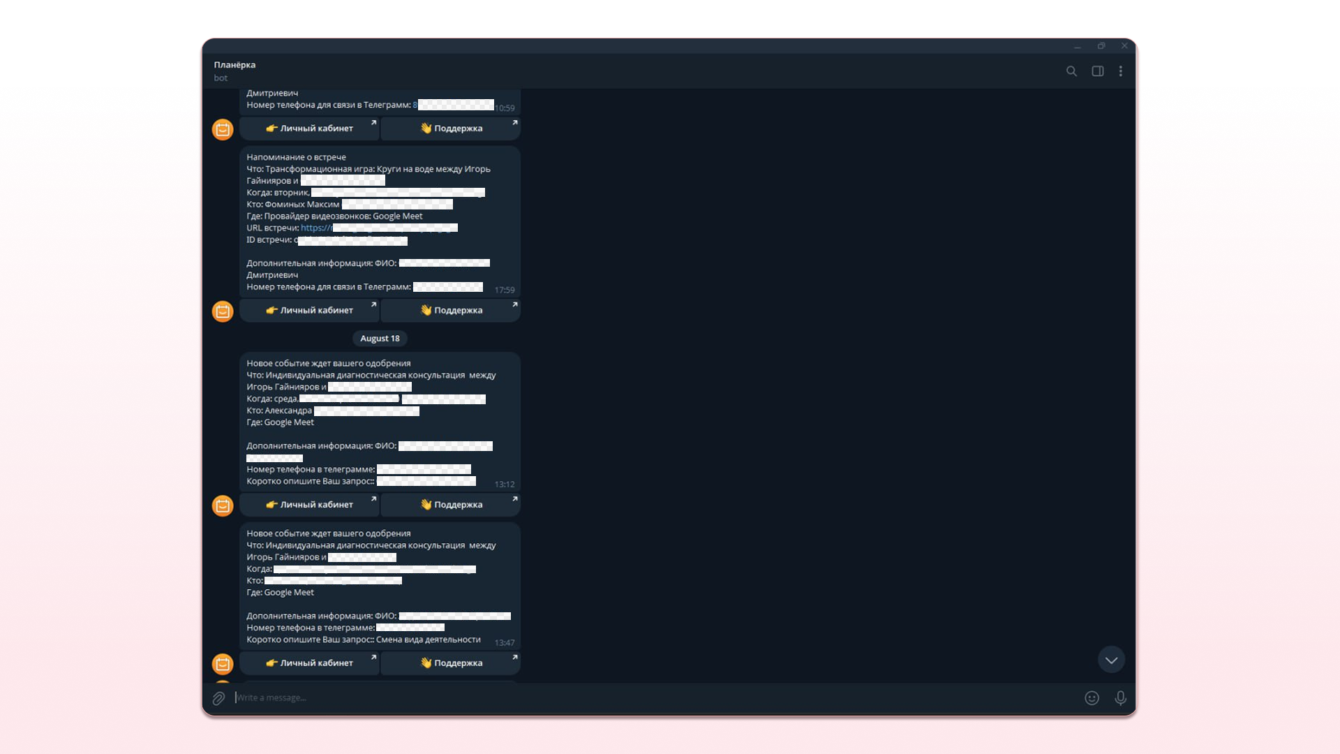 ✅ Напоминания в Телеграме о встречах. Запустил бота Планёрки и теперь могу приходить на встречи прямо из мессенджера. Не надо заходить на почту или в личный кабинет.